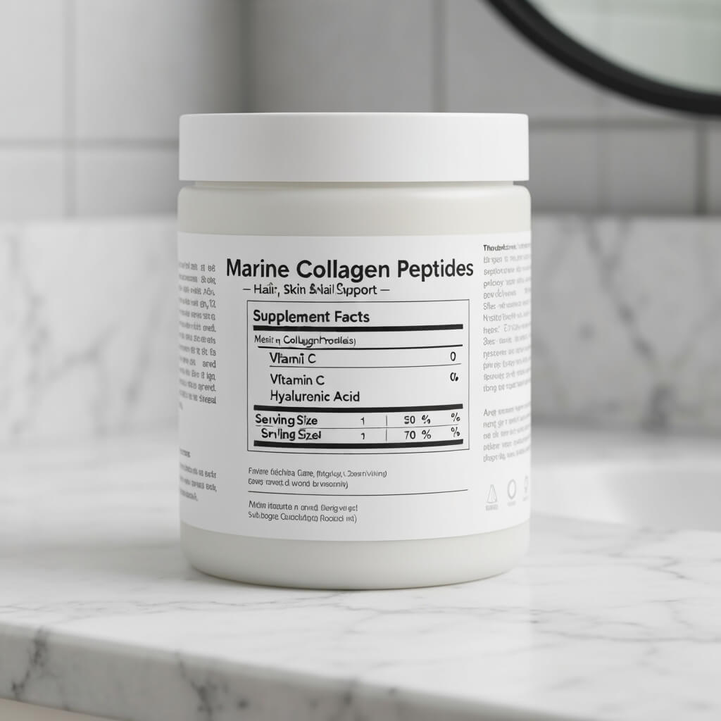 Revitalize your beauty from within with Marine Collagen Peptides, a premium supplement designed to support healthy hair, skin, and nails. Sourced from sustainably harvested fish collagen, this easily absorbed formula promotes skin elasticity, hydration, and strengthens brittle nails and thinning hair. Enriched with vitamin C for enhanced collagen synthesis, Marine Collagen Peptides is your daily step toward a youthful, radiant appearance.